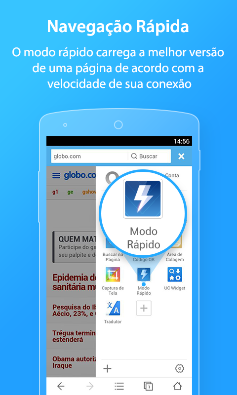 - Extensões: Personalize sua experiência com as extensões exclusivas para o UC Browser.